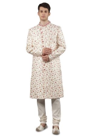Manish Creations Men's Slim fit Floral Embroidery Ethnic Sherwani Set