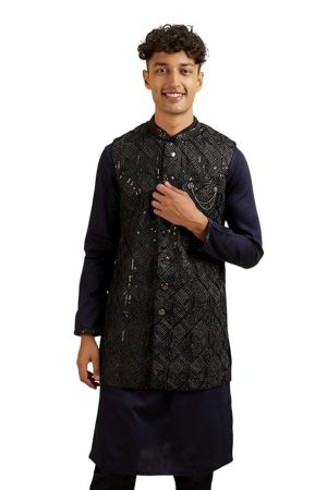 Manyavar Men's Velvet Embroidered|Sequins Jacket Set