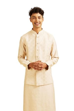 Manyavar Men's Art Silk Floral Embroidery Jacket Set