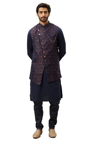 Manyavar Men's Viscose Blend Foil & Digital Print Kurta Jacket Set