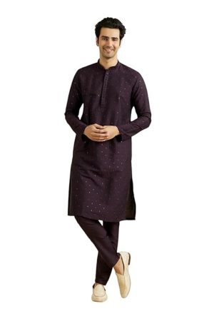 Manyavar Men's Viscose Blend Sequins & Shimmer Kurta Pyjama Set
