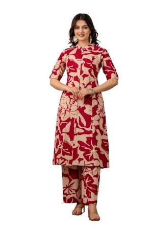 MF Hayat Women Pure Cotton Printed Long Front Slit Kurta and Pant Set Co-Ords Set for Women