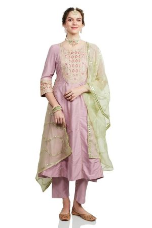 Myx Women's Embroidered Cotton Kurta Pant Set with Dupatta