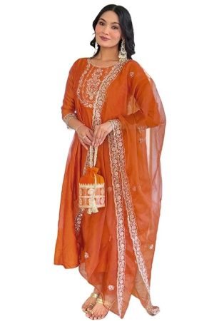 Myx Women's Embroidered Anarkali Kurta Set with Organza Dupatta | Latest Design | Available in Plus Sizes