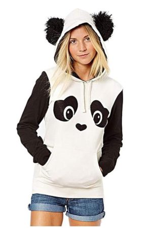 oiry Fashionable Women's Printed Contrast Pocket Hooded Fleece Top Sweater