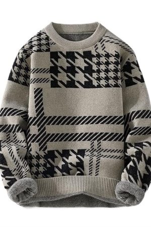 Psampa Long sleeve shirt Men's Knitting Pullover Chest Printing Thick Women's Warm Sweater Winter Plaid Sweater
