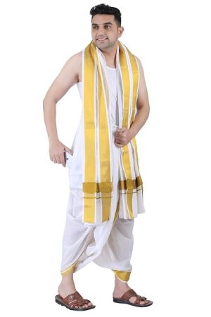 PRAKASAM COTTON Men Cotton Panjakejam (Ready To Wear) Casual Style Dhoti Towel Set With Pocket