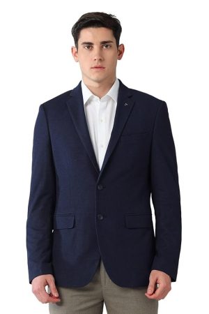 Arrow Men's Blue self-Design Notch Collared Long Sleeve Formal Polyester Slim Fit Blazer