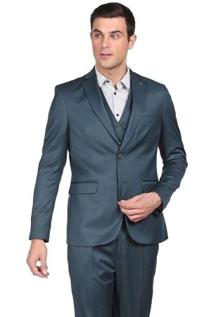 Arrow Cotton Men Dark Green Reversible Waistcoat Notch Lapel Collar Formal Suit Business Pants Set