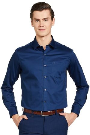 Arrow Men's Solid Full Sleeve Slim Fit Cutaway Collar Satin Formal Shirt